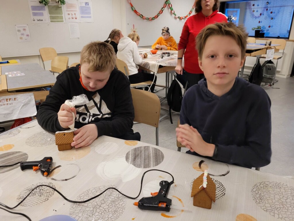 Vi började veckan med en mysig förmiddag då vi tränade på luciasångerna, lyssnade på julmusik och byggde små pepparkakshus. Husen som nu pryder fönsterkarmarna i klassrummet får eleverna ta hem sista skoldagen.